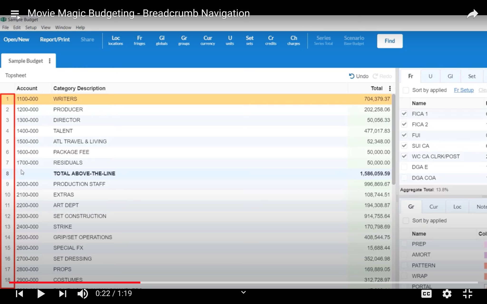 This is part of a Back to Basics series of videos for Movie Magic Budgeting 7.
